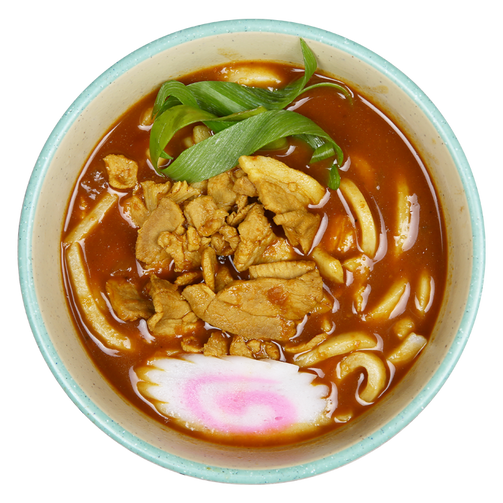 Our thick and chewy udon noodles in a mildly spicy house curry broth, topped with pork strips.