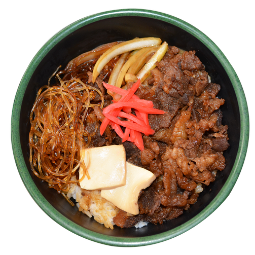Beef strips marinated in gyudon sauce, over Japanese rice. Comes with tofu and glass noodles for the perfect balance of heartiness and flavor.