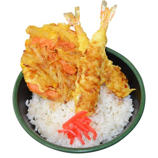 Ebi tempura and kaki-age in our special sweet tendon sauce, over Japanese rice. Simple way to satisfy your crispy cravings.